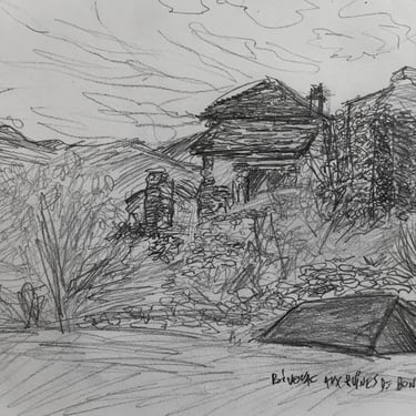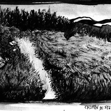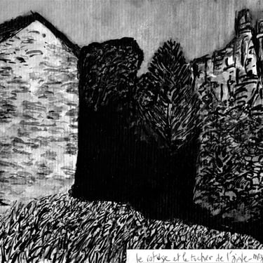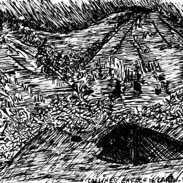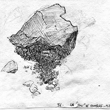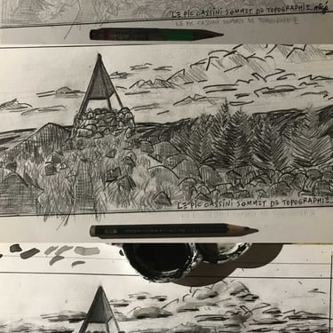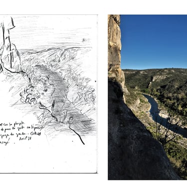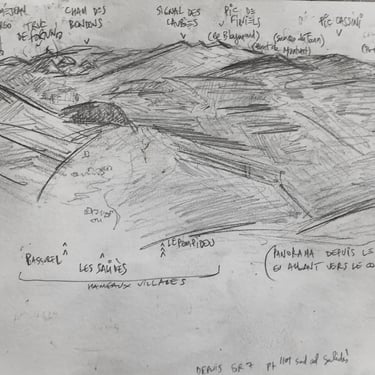 cette expérience en mélant itinérance en solitaire et expression artistique faisait un peu suite aux croquis de mon village Brignon, depuis je continue à en réaliser quand je repars y marcher, j'en ai depuis réalisé d'autres pour les gorges du Gardon, les Calanques ou les pyrénnées....