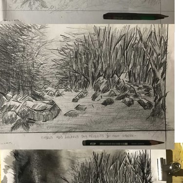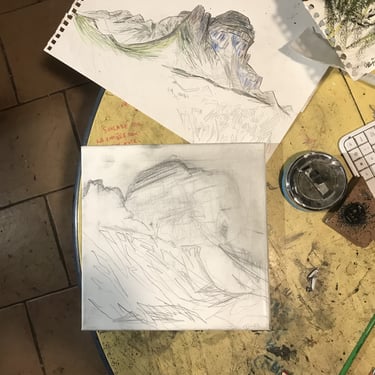 je n'ai pas vraiment ramené de croquis finis mais je travaille depuis sur une série de peintures ...