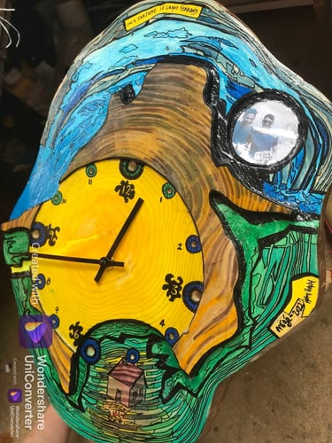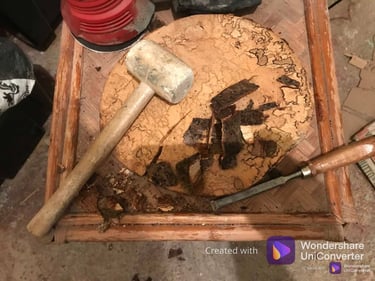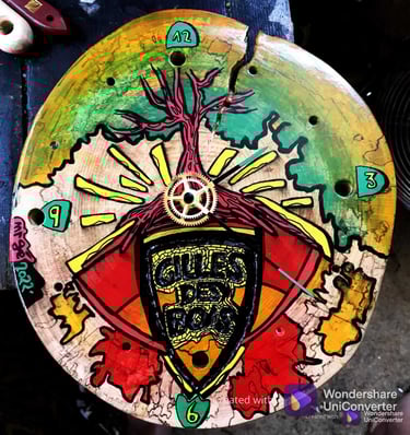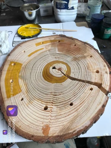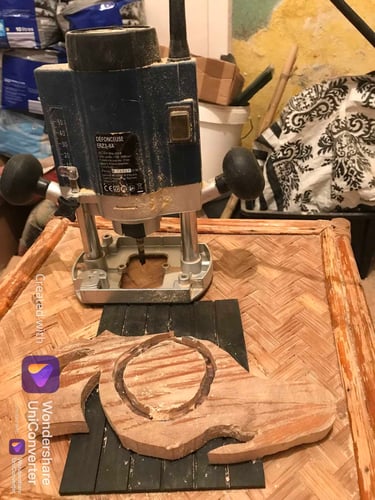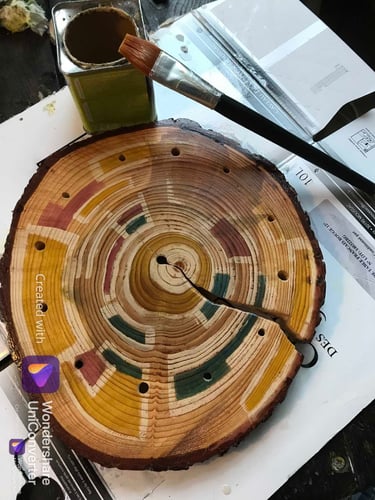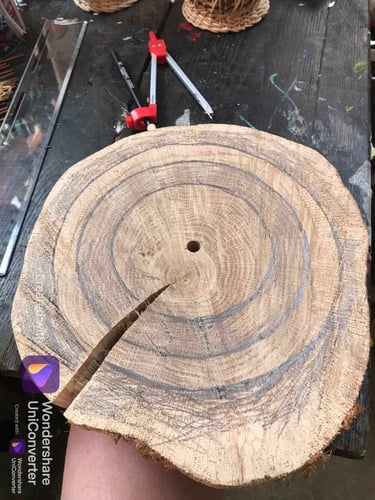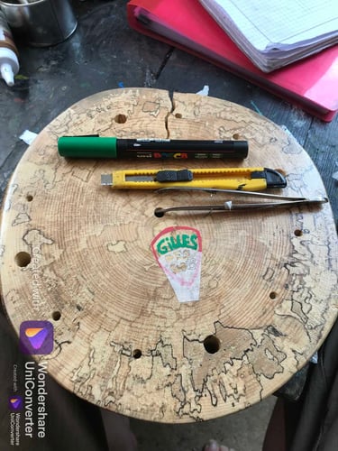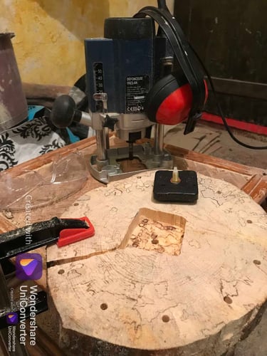 For the tools before being able to draw/paint the wood there is of course first a lot of sanding, the router for the rear cavity accommodating the mechanism and also possible reliefs on the visible face, the Dremel for possible finishes, drill for time marks etc.