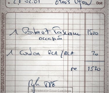 Drums also means a minimum of sound insulation, using a lot of acoustic foams and volumes cobbled together from various fabrics and materials.We can guess in the photos the telecaster and the mustang in early... versions...! Also guitars sold since (epiphone ea250, Eko Ranger12, Giannini Craviola12, grestsch...)