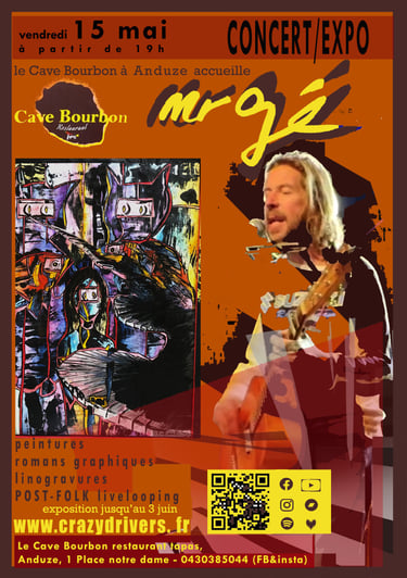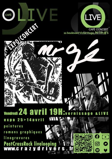 "On démarre avec un régional de l'étape : l'artiste aux multiples facettes Mr. Gé accompagné de ses imaginaires Crazy Drivers of the Nowhere Road. Comme quoi on a pas besoin d'aller chercher bien loin pour trouver du talent."