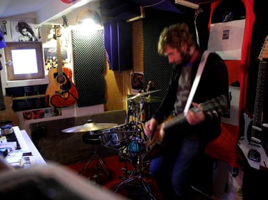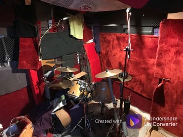 Qui dit batterie veut aussi dire un minimum d'isolation, pas mal de mousses acoustiques et des volumes bricolés à partir de tissus et matières diverses.