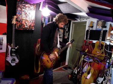 on devine sur les photos la télécaster et la mustang dans des versions... intermédiaires...! Egalement des guitares revendues depuis (epiphone ea250, Eko Ranger12, Giannini Craviola12, grestsch...)