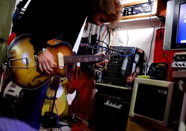 Ce Home-studio me permet de découvrir et tester plein de choses en termes de prises de son et de la production musical dans son ensemble. Rien que le fait de pouvoir tout mixé avec les enceintes et non au casque permet d'améliorer le résultat. Je travaille au réglages des instruments, amplis et pédales, j'essaie différentes positions et combinaisons de micros, valeurs des pré-amplis et compresseurs à la prise etc. Je conserverais beaucoup de ces méthodes par la suite pour gagner en rapidité/qualité et pouvoir d'autant me concentrer sur la musique elle-même.