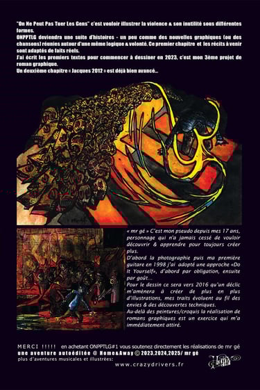 "On Ne Peut Pas Tuer Les Gens" c'est une série que j'ai commencé à imaginer puis dessiner en 2023. un projet au long court pour illustrer les violences et leur inutilité